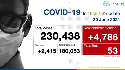 Thailand ranks 73th on the global list of most cases, which is topped by the US with 34.52 million, followed by India with 30.36 million, Brazil 18.51 million, France 5.77 million, and Russia 5.49 million.