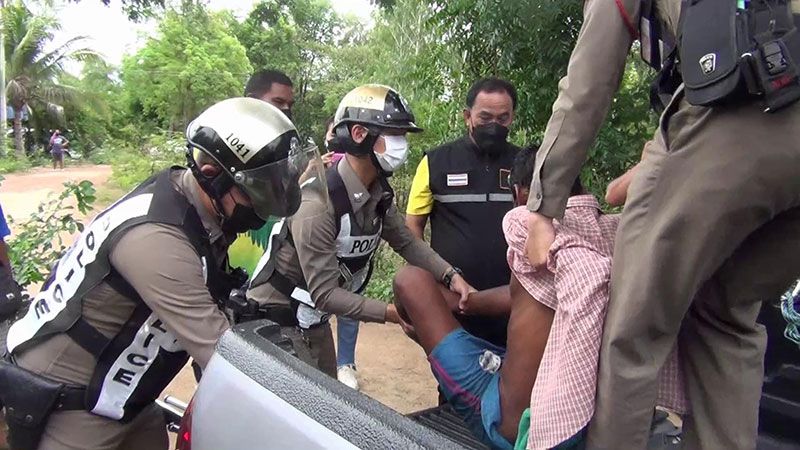 โดยในระหว่างที่เจ้าหน้าที่พร้อมกับอาวุธครบมือ ได้เดินเข้าไปในบ้าน ชายคลุ้มคลั่งได้เกิดอาการโวยวายโดยที่จะไม่ไปกับเจ้าหน้าที่ โดยอ้างว่าตนเองนั้นไม่เป็นไร เจ้าหน้าที่ได้เข้าพูดคุยพร้อมกับได้ประชิดถึงตัวและได้เข้าชาร์ตรวบตัวได้ทันที่ หลังจากนั้นนายสมคิด จูวงษ์สุข นายกองค์การบริหารตำบลหนองแก ได้เข้าพูดคุยกับชายที่คลุ่มคลั่ง จนสงบสติอารมณ์ลง โดยได้ยอมไปแต่โดยดีและได้ขึ้นรถตำรวจ โดยนายสมคิด ได้ติดตามไปส่งพูดคุยถึงรถยนต์ตำรวจ โดยไม่ขัดขืนอะไร