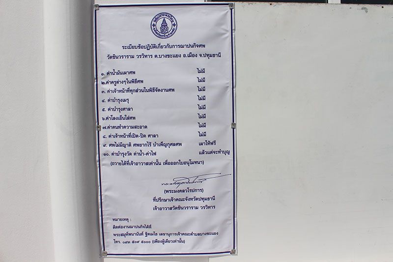 ด้านพระสมุห์พนานันท์ ฐิตเมโธ ได้ให้สัมภาษณ์ผู้สื่อข่าวว่า ทางวัดชินวรารามวรวิหารเลขานุการเจ้าคณะตำบลบางขะแยงวัดชินวรารามวรวิหาร บอกกับผู้สื่อข่าวว่า ทางวัดจะมีป้ายติดระเบียบและข้อปฎิบัติเกี่ยวกับการฌาปนกิจศพวัดชินวรารามวรวิหาร ต.บางขะแยง อ.เมือง จ.ปทุมธานี ไม่มีค่าใช้จ่ายใดๆทั้งสิ้นส่วนค่าน้ำ ค่าไฟ ก็แล้วแต่ญาติโยมหรือเจ้าภาพจะบริจาคตามกำลังศรัธา