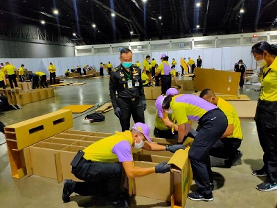 Armed forces volunteers assemble 1,500 beds at Bussarakham Field Hospital