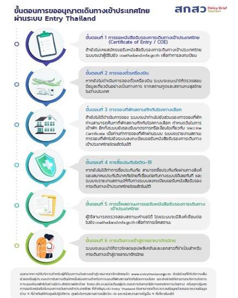 3) การปรับโครงสร้างการท่องเที่ยวหลังยุคความปกติใหม่ รัฐบาลควรช่วยเหลือและเสริมสร้างศักยภาพของผู้ประกอบการธุรกิจท่องเที่ยวและธุรกิจเกี่ยวเนื่อง รวมถึงการจัดทำ เก็บข้อมูลและการบริหารจัดการฐานข้อมูลขนาดใหญ่ เพื่อวิเคราะห์พฤติกรรมและความต้องการการท่องเที่ยวสู่การวางแผนบริหารจัดการการท่องเที่ยวอย่างยั่งยืน นอกจากนี้ยังใช้ฐานข้อมูลเพื่อส่งเสริมความปลอดภัยในการท่องเที่ยว เช่น ต่อยอดเป็นระบบเตือนภัย พัฒนาทักษะแรงงานของภาคการท่องเที่ยวเพื่อเตรียมพร้อมยกระดับการท่องเที่ยววิถีใหม่และรูปแบบใหม่