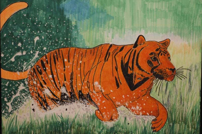 สำหรับนิทรรศการวิทยานิพนธ์ ภาพวาดฝีพระหัตถ์ชุด “หลากลาย หลายชีวิต” เป็นผลงานภาพวาดที่สะท้อนให้เห็นถึงความหลากหลายทางอัตลักษณ์ หลากหลายทฤษฎี หลากหลายกลวิธีของมนุษย์ที่สามารถอยู่รวมด้วยกันได้ ทรงใช้สัญลักษณ์สื่อความหมายการแสดงออกจากสิ่งที่ทรงมีความประทับใจนั่นคือ “เจ้าป่า” อันสื่อความหมายถึง “พระราชบิดา” พระบาทสมเด็จพระบรมชนกาธิเบศร มหาภูมิพลอดุลยเดชมหาราชบรมนาถบพิตร โดยแสดงแนวความคิดเกี่ยวกับเสือเจ้าป่าผู้เปรียบเสมือนราชา เจ้าฟ้าเจ้าแผ่นดิน ผ่านการสร้างสรรค์ที่ทรงถ่ายทอดผ่านปลายปากกา เป็นรูปลักษณ์ของเสือท่ามกลางบริบทแวดล้อมที่แตกต่างกัน ตามเรื่องราวและเนื้อหาในแต่ละภาพเป็นเสือที่ใจดี มีเมตตา เพียรสอนสั่งและกระทำสิ่งดีงามต่อผู้อื่น เป็นเสือที่มีแต่ความรักและความปรารถนาดีต่อทุกคน