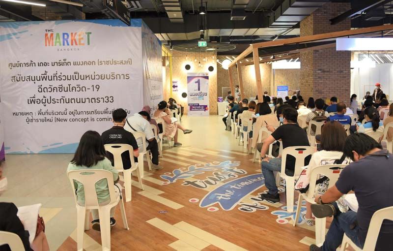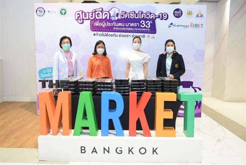 เดอะ มาร์เก็ต แบงคอก (ราชประสงค์) ร่วมมือภาครัฐ เดินหน้าบริการฉีดวัคซีนป้องกันโควิด-19 สำหรับผู้ประกันตนมาตรา 33 โดย บมจ.เดอะ แพลทินัม กรุ๊ป ผู้บริหารศูนย์การค้า เดอะ มาร์เก็ต แบงคอก ราชประสงค์ สนับสนุนพื้นที่รวมกว่า 2,500 ตารางเมตร ณ บริเวณอาคาร M2 ที่ชั้น M และชั้น 1 เพื่อเป็นหน่วยบริการฉีดวัคซีนป้องกันโควิด-19 ให้แก่ผู้ประกันตนจัดโดย กระทรวงแรงงาน, สำนักงานประกันสังคมทั้งนี้ เพื่อเป็นการช่วยเหลือภาครัฐ ในการให้บริการฉีดวัคซีนโควิด-19 ให้กับประชาชน อย่างเร่งด่วนให้ได้มากที่สุด เพื่อป้องกันโรคให้กับตนเองและคนรอบข้าง ตลอดจนสร้างภูมิคุ้มกันหมู่ให้กับประเทศโดยเร็วที่สุด