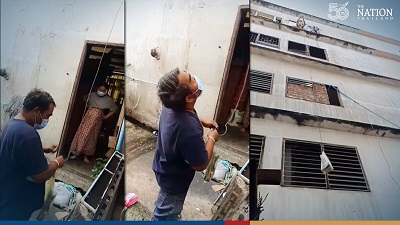 He explained that neighbours have to send meals to Michael, who lives in a fourth-storey apartment, by using a rope as he does not have any relatives. The food packets are tied to a long rope, which the boy pulls up.