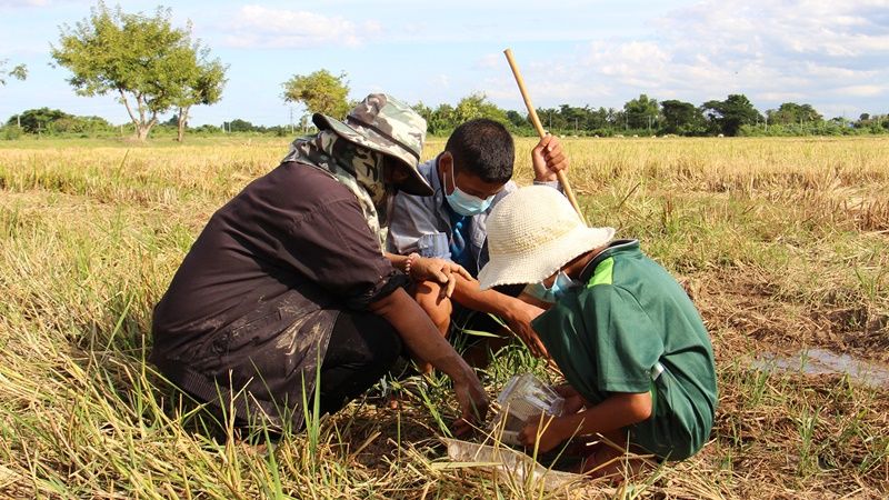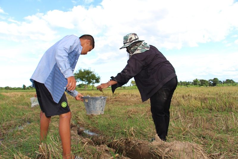พบแม่พาลูกชายวัย 9 ขวบกับ 15 ปีออกหาปูนาในทุ่งบริเวณนาพื้นที่หมู่ 4 ตำบลอ่างทอง อำเภอเมืองราชบุรี หลังเสร็จสิ้นฤดูเกี่ยวข้าวเพื่อนำไปเลี้ยงเสริมรายได้ในยุควิกฤติโควิด -19 กำลังระบาดทั่วโลก