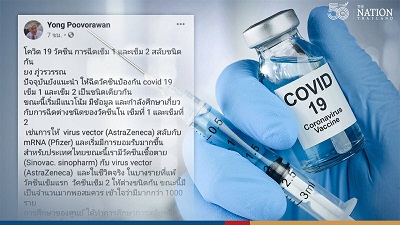 Mixing and matching inactivated and viral-vector vaccines generates higher immunity than two doses of the same vaccine, according to Chulalongkorn University virologist Dr Yong Poovorawan.