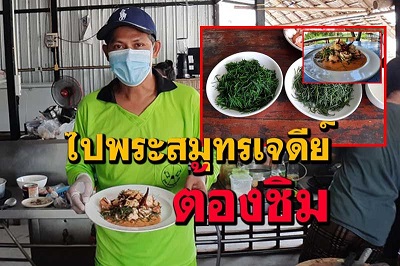 ไปชิมยำชะครามกุ้งสดอาหารพื้นบ้านพระสมุทรเจดีย์ เค็มนิดหวานหน่อยอร่อยลิ้น