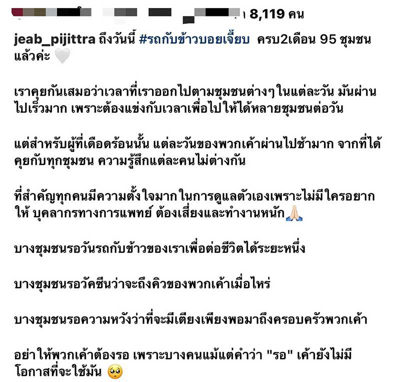 @jeab_pijittra ถึงวันนี้ #รถกับข้าวบอยเจี๊ยบครบ 2 เดือน 95 ชุมชนแล้วค่ะ