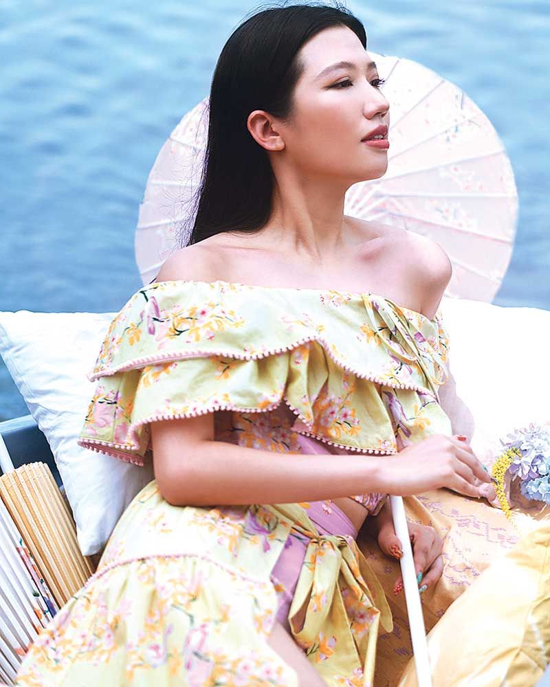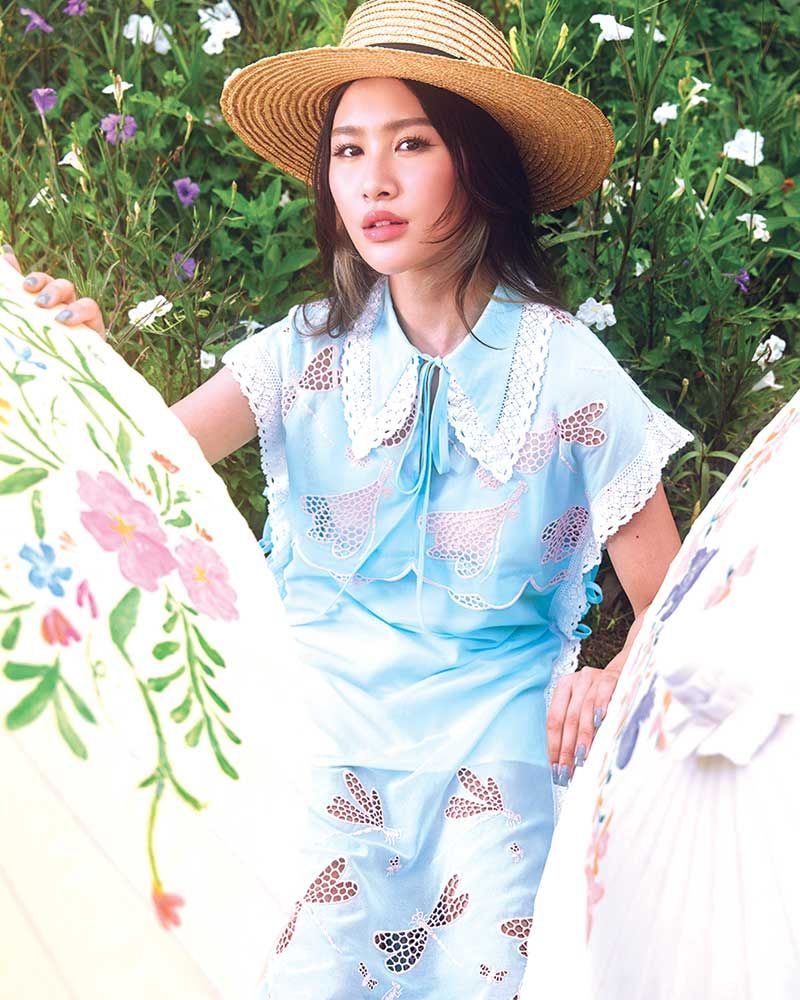 Disaya Vacationist-Bo Sang Collection ยังคงผสมผสานความสนุกสนานของการเดินทางเข้ากับงานฝีมือจากท้องถิ่นต่างๆ โดยในซีซั่นนี้นำความอิ่มเอมใจที่ได้สัมผัสวิถีชีวิตของชาวพื้นเมืองอันเลื่องชื่อมาเป็นแรงบันดาลใจหลักโดยการนำดีเทลกระดุมจีนที่มีเอกลักษณ์ด้วยการผูกโบไล่เลียงลงมาของเสื้อม่อฮ่อมอันเป็นสัญลักษณ์ของภาคเหนือที่ได้รับการถ่ายทอดมาจากเสื้อผ้าของชาวจีนผสานเข้ากับลายพิมพ์ดอกไม้ ทิวเขาผีเสื้อ ที่เกิดจากการระบายของพู่กันการสะบัดแปรงซึ่งใช้เทคนิคการทำ ร่มบ่อสร้าง หัตถกรรมท้องถิ่นมาสร้างสรรค์เป็นชุดเดรสแขนกุดคอจีน เทคนิคการปักฉลุก่อเกิดลวดลาย ดอกไม้ แมลงปอ ปรากฏบนเสื้อครอปคอสี่เหลี่ยมเข้าเซตกับกระโปรงป้ายผูกเชือก