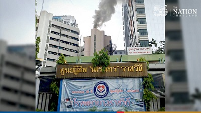 At 10.02am, the traffic radio channel “FM91 Trafficpro” reported that a fire had broken out on the 10th floor of Sirindhorn Building of the hospital in Ratchathewi district.