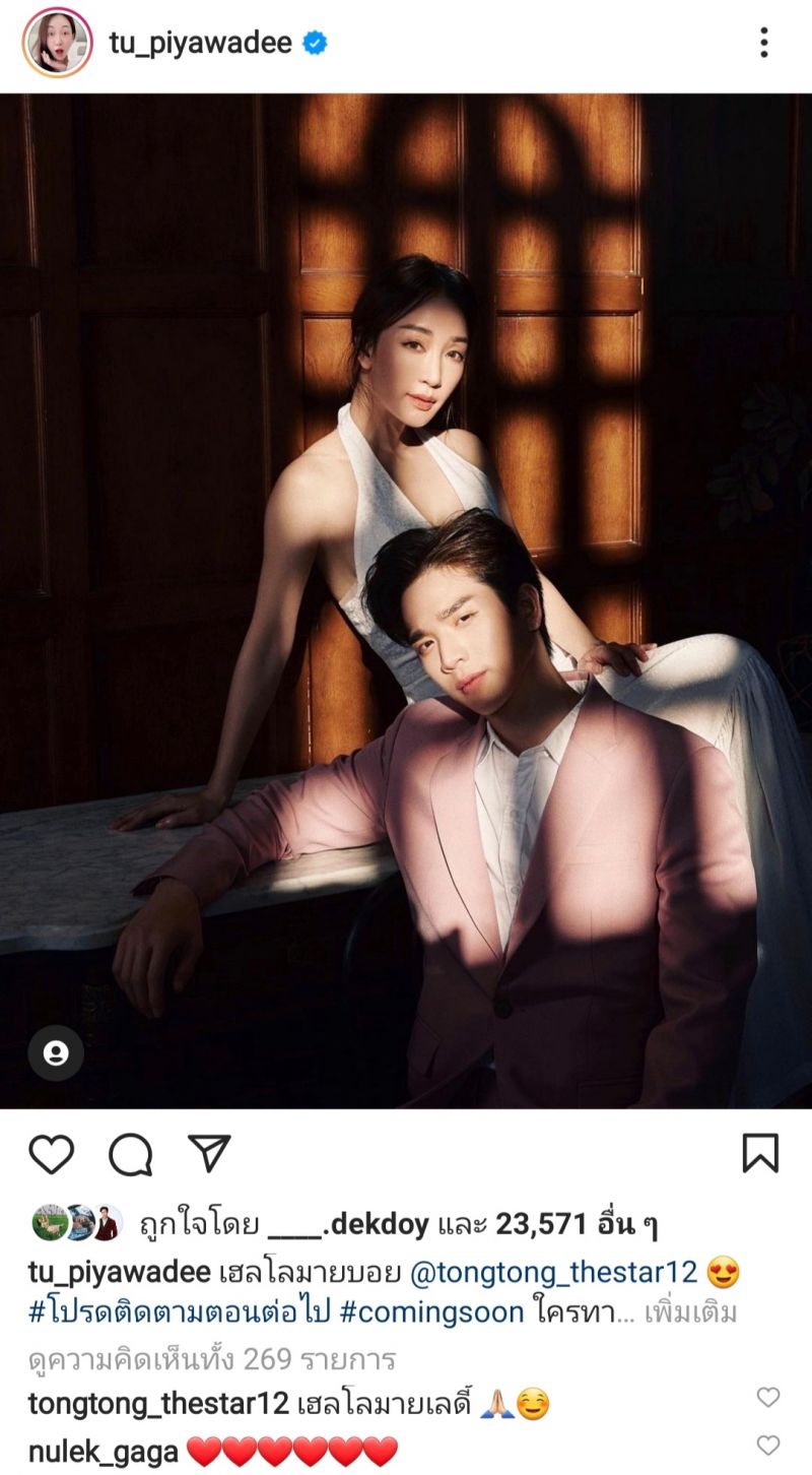 หลังจากนั้นมีโพสต์ที่ 2 ตามมา “เฮลโลมายบอย @tongtong_thestar12 #โปรดติดตามตอนต่อไป #comingsoon ใครทายถูกบ้าง เห็นแค่หูกับมือก็ยังรู้ไปอีกกก” จนกลายเป็นกระแสถัดมาผู้จัดสาว “ตู่ ปิยวดี” โพสต์ภาพลงในอินสตาแกรมคู่กับพระเอกต่างช่องอย่างหนุ่ม “ตงตง กฤษกร” แถมยังมีข้อความเป็นปริศนา “ก็บอกในคลิปก่อนหน้าแล้วไง ว่าไม่ได้มีคนเดียว ดูออกมั้ยว่าใครเอ่ย ใบ้นิดหน่อยว่าน่ารักกรุบ #ใบ้ยังไงให้เหมือนไม่ใบ้ แฟนคลับตัวจริง แค่เห็นมือก็รู้แหละ” ก่อนที่มาขยี้ต่อกับโพสต์ “เฮลโลมายบอย @tongtong_thestar12 #โปรดติดตามตอนต่อไป #comingsoon ใครทายถูกบ้าง เห็นแค่หูกับมือก็ยังรู้ไปอีกกก”