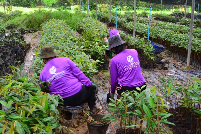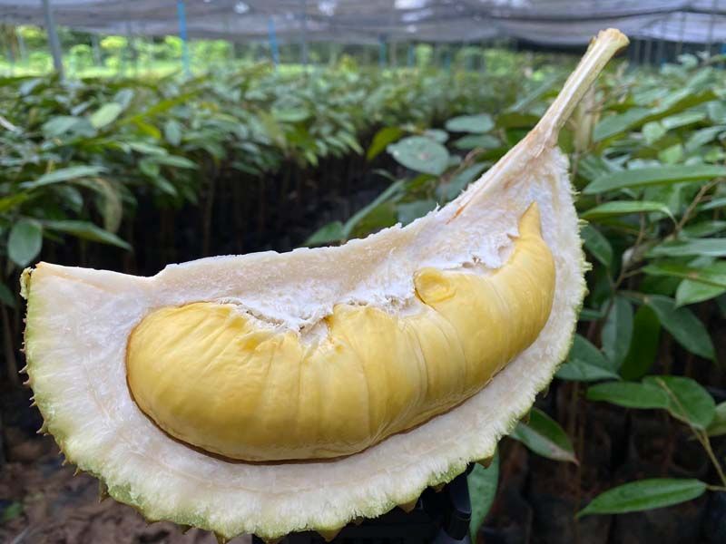 ส่วนการขยายกิ่งพันธุ์ คุณศักดิ์ศรี บอกว่า ก็ทำมาอยู่ 5-6 ปี ทำต้นพันธุ์ก็คือ โดยทางสวนใช้ต้นแม่พันธุ์ที่สมบูรณ์ ไม่มีโรค ให้ผลผลิตตรงตามสายพันธุ์ เป็นการการันตี ตรงนี้เป็นหลัก เพื่อความมั่นใจในเรื่องสายพันธุ์ คือผมใช้ยอดจากสวนผมเอง โดยไม่ได้เอามาจากสวนที่อื่น เมื่อลูกค้าที่ซื้อกล้าพันธุ์ มูซานคิงส์จากสวนผมไปปลูกก็จะได้ผลผลิตเหมือนที่สวนผมเลยและรูปทรงต้องตรงปกแน่นอนผมถึงกล้าพูด ทุเรียนเบตง หรือทั้งจังหวัดยะลา รสชาติค่อนข้างจะดี เพราะการสุกของทุเรียนแต่ละสายพันธุ์ มันช้าลงก็คือใช้เวลานานค่อนข้างนานขึ้นก่อนจะสุก ผลผลิตก็มีคุณภาพที่ดีด้วย ส่วนใครสนใจต้นพันธุ์ทุเรียน มูซานคิง โอวฉี หรือหนามดำ ทุเรียนเบตง สามารถ ติดต่อได้ที่ทุเรียนเบตง สวนศักศืศรี 0980162806 0988714889 หรือเฟจบุ๊กกลุ่มทุเรียนเบตง