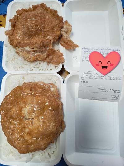 ทางร้านเห็นข้อความแบบนี้ มีหรือจะไม่ได้ เพราะเข้าใจหัวอกซึ่งกันและกัน ทางร้านจึงทำข้าวไข่เจียวเพิ่มให้อีกกล่อง พร้อมกลับเขียนข้อความกลับไปที่ใบเสร็จว่า “อีกกล่อง ทางร้านฝากให้เด็กค่ะ ทานให้อิ่มนะคะ”
