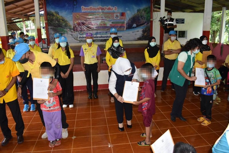 ที่โรงเรียนผังปาล์ม 3 หมู่ที่ 2 ตำบลปาล์มพัฒนา อำเภอมะนัง จังหวัดสตูล นาวาตรีหญิงโนสมา หลีเส็น นายกเหล่ากาชาดจังหวัดสตูล นายธีระยุทธ นาวีเดล นายอำเภอมะนัง นายแพทย์สาธารณสุขจังหวัดสตูล ผู้อำนวยการโรงเรียนผังปาล์ม 3 และส่วนราชการพื้นที่ ร่วมส่งน้อง ๆ นักเรียนและครู ที่สัมผัสเสี่ยงสูง พักสังเกตอาการครบ 14 วัน รวมนักเรียนทั้งสิ้น 27 คน และครูอีก 7 คน สู่อ้อมกอดของครอบครัวอย่างอบอุ่น