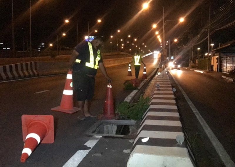 อันตราย! ฝาตะแกรงเหล็กหลายจุดบนถนนราชพฤกษ์ถูกขโมยจน จยย.ตกท่อบาดเจ็บ