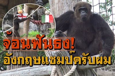 ฟุตบอลยูโร 2020 คู่ชิงชนะเลิศ ทีมอังกฤษพบทีมอิตาลี ที่จะมีการแข่งขันในวันที่ 12 กรกฎาคม 2564 เวลา 02.00 น. เจ้าจ้อน ลิงชิมแปนซี ประจำสวนสัตว์สงขลา ยังคงเหนียวแน่นเชียร์ทีมชาติอังกฤษเพื่อให้ได้เป็นแชมป์ฟุตบอลยูโร 2020 มันวิ่งออกมาคว้าธงชาติอังกฤษและคว้าลูกฟุตบอลท่ามกลางเสียงเฮ!!จาก ผอ.สวนสัตว์และกองเชียร์ที่เจ้าจ้อนทายผลบอลได้สะใจ วันนี้เจ้าจ้อนกินน้ำแดงกับมะม่วงเท่านั้น
