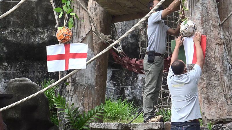 ผอ.วันชัย ผอ.สวนสัตว์สงขลา ก็เชียร์ทีมชาติอังกฤษอยู่เหมือนกัน งานนี้โดนใจ ผอ.สวนสัตว์สงขลา เตรียมน้ำแดงและเตรียมทุเรียนบ้านมาให้เจ้าจ้อนเป็นรางวัล วันนี้เจ้าจ้อนกินน้ำแดงกับมะม่วงเท่านั้น ทุเรียนบ้านเจ้าจ้อนไม่สนรอกินทุเรียนหมอนทองวันจันทร์นี้