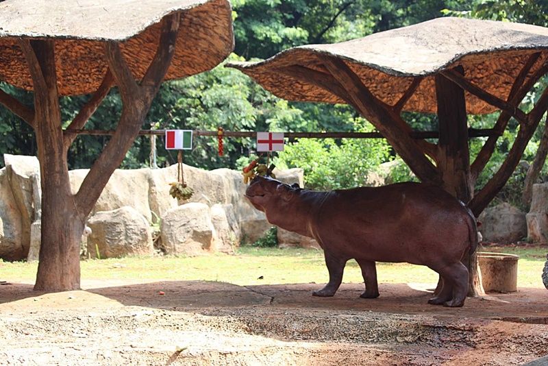 วันที่ 10 ก.ค.64 ที่สวนสัตว์นครราชสีมา อำเภอเมือง จังหวัดนครราชสีมา นายธนชน เคนสิงห์ ผู้อำนวยการสวนสัตว์นครราชสีมา พร้อมด้วยเจ้าหน้าที่สวนสัตว์นครราชสีมาได้จัดกิจกรรมให้สัตว์ป่าทายผลแชมป์ฟุตบอลยูโร 2020 รอบคู่ชิงชนะเลิศ เพื่อสร้างสีสันและความสนุกสนามเฮฮาให้กับการแข่งขันฟุตบอลยูโร เพื่อแฟนคลับแฟนบอลชาวจังหวัดนครราชสีมาและประชาชนคนไทยที่เป็นคอการแข่งขันฟุตบอลระดับทวีปยุโรป ระหว่าง ทีมอังกฤษ vs ทีมอิตาลี โดยทางเจ้าหน้าที่สวนสัตว์ฯ ได้นำธงชาติทั้งสองทีม และนำกล้วยน้ำหว้า ข้าวโพด แครอท แขวนรวมกันก่อนที่ “น้องนำชัย” ฮิปโปโปเตมัส จะก้าวเดินไปกินผลไม้ที่มีธงชาติอังกฤษ์ ทำให้แฟนบอลอังกฤษส่งเสียงเฮที่คาดว่าทีมอังกฤษ จะเป็นแชมป์ยูโร ตามคำทำนายของ “น้องนำชัย”