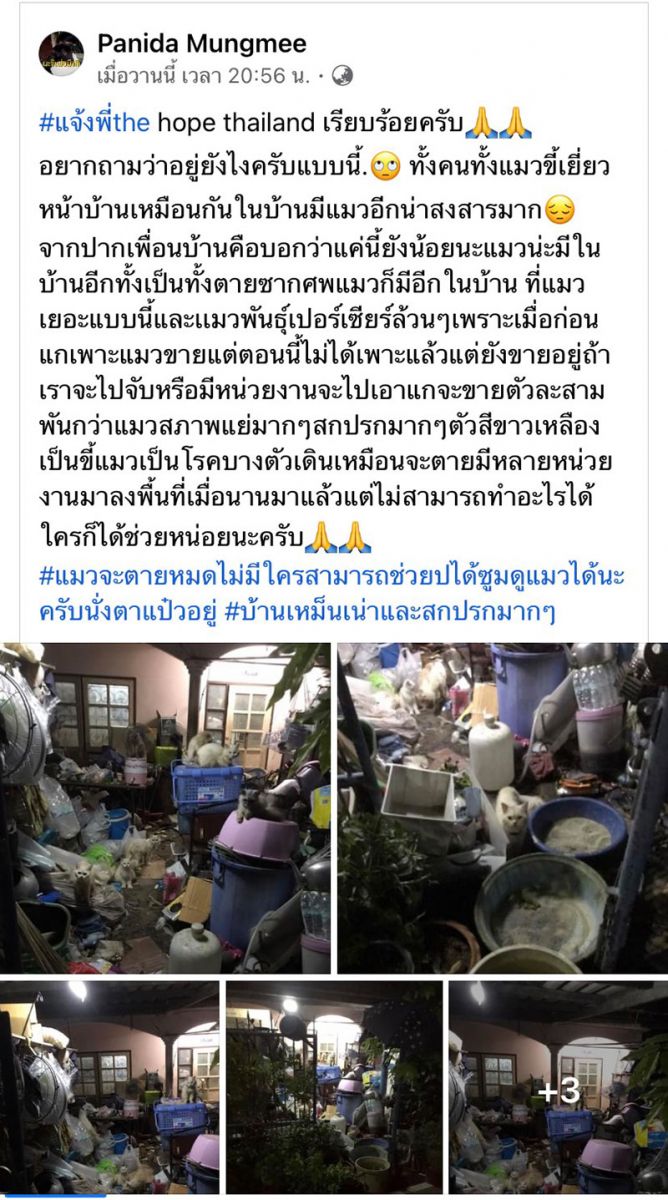 #แจ้งพี่the hope thailand เรียบร้อยครับอยากถามว่าอยู่ยังไงครับแบบนี้ ทั้งคนทั้งแมวขี้เยี่ยวหน้าบ้านเหมือนกันในบ้านมีแมวอีกน่าสงสารมาก จากปากเพื่อนบ้านคือบอกว่า แค่นี้ยังน้อยนะแมวน่ะมีในบ้าน อีกทั้งเป็นทั้งตายซากศพแมวก็มีอีกในบ้าน ที่แมวเยอะแบบนี้และเเมวพันธุ์เปอร์เซียร์ล้วนๆ เพราะเมื่อก่อนแกเพาะแมวขาย แต่ตอนนี้ไม่ได้เพาะแล้วแต่ยังขายอยู่ ถ้าเราจะไปจับหรือมีหน่วยงานจะไปเอา แกจะขายตัวละสามพันกว่า แมวสภาพแย่มากๆสกปรกมากๆ ตัวสีขาวเหลืองเป็นขี้แมวเป็นโรคบางตัวเดินเหมือนจะตาย มีหลายหน่วยงานมาลงพื้นที่เมื่อนานมาแล้ว แต่ไม่สามารถทำอะไรได้ใครก็ได้ช่วยหน่อยนะครับ #แมวจะตายหมดไม่มีใครสามารถช่วยได้ ซูมดูแมวได้นะครับนั่งตาแป๋วอยู่ #บ้านเหม็นเน่าและสกปรกมากๆ