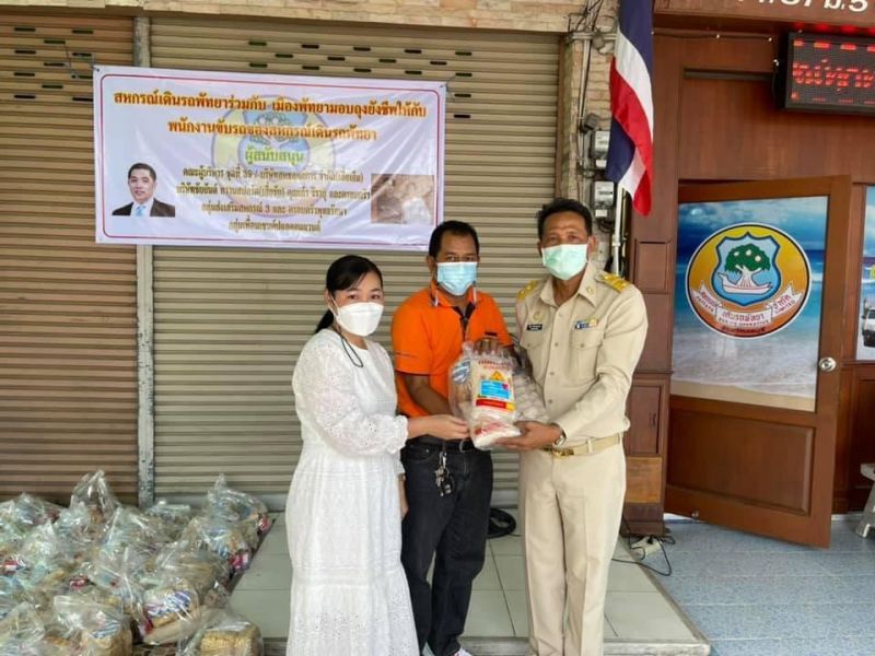 ‘เก้า จิรายุ – แม่ก้อย’ ร่วมกับสหกรณ์เดินรถพัทยา มอบถุงยังชีพ