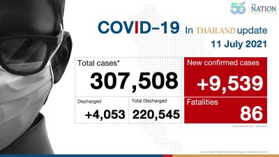 The Centre for Covid-19 Situation Administration on Sunday reported 9,539 new cases and 86 deaths over a 24-hour period.