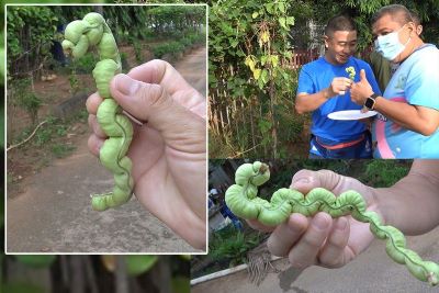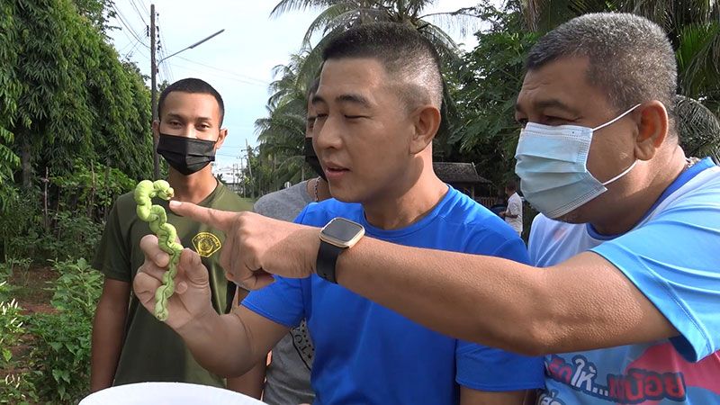 ‘ถั่วฝักยาว’ออกฝักแปลก! น่ารักเหมือนตัวหนอนอวบอ้วน ที่สวนบ้านพักผบ.ทัพเรือภาค2