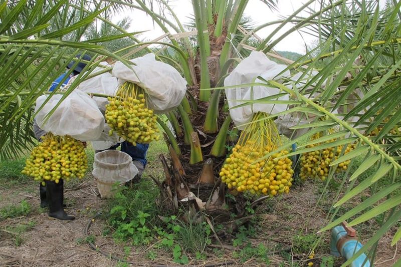 นางกิรณา ฉ่ำเวชะ เจ้าของไร่พุทธาผาลัม กล่าวว่า ปลูกอินทผลัมไว้ประมาณ 605 ต้น ปลูกจากเนื้อเยื่อประมาณ 400 ต้น ที่เหลือปลูกโดยเมล็ดเพื่อนำเกสรตัวผู้ไปผสมกับต้นเนื้อเยื่อที่ปลูกไว้ เป็นสายพันธุ์บาฮี ตอนนี้ออกผลผลิตมาเป็นปีที่ 2 แล้ว อย่างปีที่แล้วออกมาประมาณกว่า 200 ช่อ ปีนี้ออกผลผลิตเพิ่มขึ้นนับพันช่อ สามารถทยอยเก็บผลผลิตได้แล้วในบางต้น