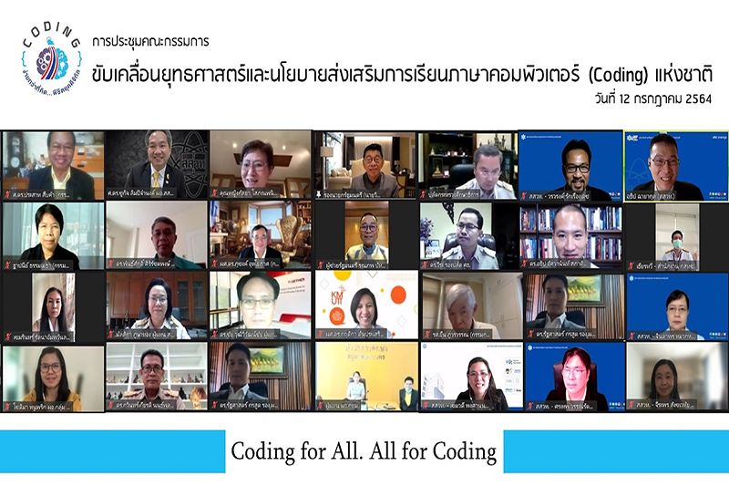 ที่ประชุมรับทราบความคืบหน้าการดำเนินงานของคณะอนุกรรมการ และพิจารณาให้ความเห็นชอบการดำเนินงานเพื่อขับเคลื่อน Coding สำหรับประชากรทุกช่วงวัยอย่างเป็นรูปธรรม ได้แก่ (1) โครงการการจัดทำแผนปฏิบัติการด้านการพัฒนาขีดความสามารถ ทักษะ และการเรียนการสอนภาษาคอมพิวเตอร์ (Coding) (2) โครงการการพัฒนาหลักสูตรมาตรฐานและกระบวนการรับรองมาตรฐานหลักสูตรด้านโค้ดดิ้งแก่ประชาชนทุกช่วงวัย และ (3) การดำเนินงานขับเคลื่อนยุทธศาสตร์และนโยบายส่งเสริมการเรียนการสอนภาษาคอมพิวเตอร์ (Coding) สำหรับบุคคลทั่วไป ที่จะช่วยเสริมสร้างความเข้าใจด้าน Coding และกระบวนการคิดอย่างเป็นเหตุเป็นผลให้ประชาชนทุกกลุ่มอาชีพ เพื่อเป็นพื้นฐานการใช้เทคโนโลยีในชีวิตประจำวันอย่างมีประสิทธิภาพในโลกยุคใหม่และการใช้ชีวิตในยุค New Normal