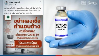 The Department of Medical Services is warning people to look out for scammers who claim they can get them a Covid-19 jab at the Bang Sue Grand Station for a fee.