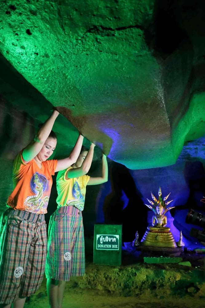 จากนั้นต่อด้วย ถ้ำเลสเตโกดอนถ้ำน้ำเค็มที่ยาวที่สุดในประเทศไทย ความยาวกว่า 3 กิโลเมตร เป็นถ้ำโบราณยุคออร์โดวิเชียน หรือประมาณ 490-444 ล้านปีก่อน มีการค้นพบซากดึกดำบรรพ์ อย่างกระดูกขากรรไกรและฟันกรามของช้างสเตโกดอน ตื่นตากับหินงอกหินย้อย และซากฟอสซิลสัตว์ทะเลที่ยังมีหลงเหลือให้เห็นอยู่ในถ้ำจากถ้ำที่อยู่ทะเลทางใต้ คราวนี้ขึ้นไปอีสานตื่นตาถ้ำใต้ดินที่เชื่อมกับแม่น้ำโขงที่ ถ้ำดินเพียงอ.สังคม จ.หนองคาย หรือที่ชาวบ้านเรียกว่า “ถ้ำพญานาค” ซึ่งที่นี่ก็มีเรื่องราวของพญานาค ภายในถ้ำมีความยาวประมาณ 200 เมตร มีลักษณะเป็นโพรงแต่ละรูสามารถเชื่อมต่อทะลุถึงกัน และยังมีน้ำไหลไปตามทางอีกด้วย ทำให้เชื่อกันว่า ถ้ำแห่งนี้ต้องเป็นที่อยู่ของพญานาคแน่นอน และด้วยเส้นทางที่แคบมากไม่สามารถยืนหรือเดินเข้าไปได้คุณน้ำผึ้งต้องก้มตัว มุด ลอด หมอบ คลานไปตลอดทาง เรียกว่าต้องเคลื่อนที่ไปให้เหมือนกับงูก็ว่าได้