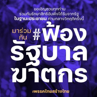 - วันเดียวกัน เวลา 21.16 น. “บอล ธนวัฒน์” ธนวัฒน์ วงค์ไชย – Tanawat Wongchai ชวนทุกคน #ฟ้องรัฐบาลฆาตกร มาร่วมกันทวงสิ่งที่เราควรได้ ก่อนเราจะตายเพราะรัฐห่วย ๆ