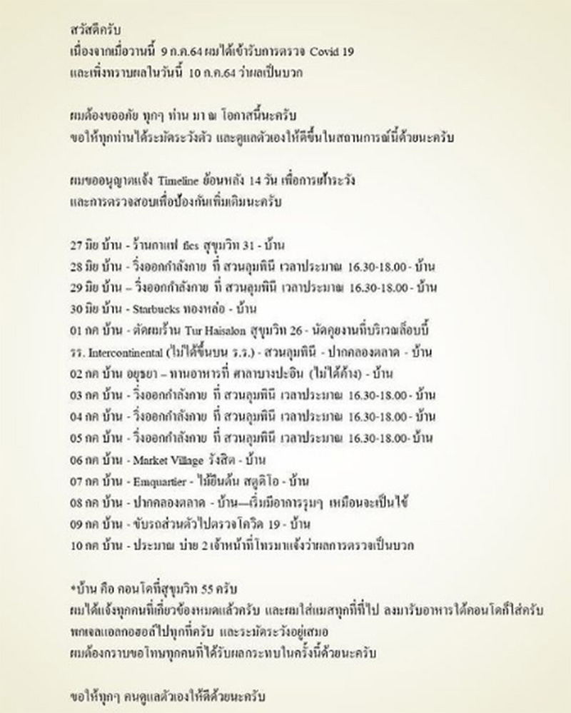 นอกจากนี้นักแสดงหนุ่มยังเปิดเผยไทม์ไลน์อย่างละเอียดดังนี้