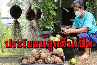 ชาวบ้านในพื้นที่ตำบลเจ็ดเสมียน อำเภอโพธาราม จังหวัดราชบุรี เก็บลูกตีนเป็ดที่หล่นเกลื่อนตามโคนต้นมาล้างใช้แปรงขัดเกิดลวดลายสวยงาม นำมาปลูกต้นหนวดฤาษีห้อยสวยงามประดับบ้าน ขายสร้างรายได้ช่วงยุคโควิด – 19 ระบาด