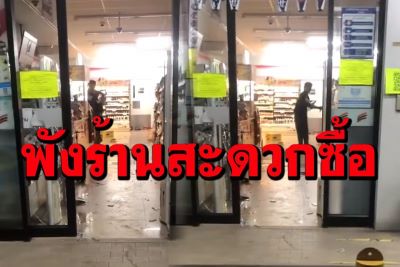 หนุ่มเครียดจัด! พังร้านสะดวกซื้อ ทำลายข้าวของ เหตุอยากกลับบ้าน (คลิป)
