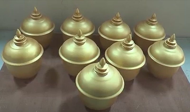 สวนกระแส! เครื่องปั่นดินเผาลายเบญจรงค์ ร้านเชอร์รี่ เบญจรงค์ อำเภอสามพราน จังหวัดนครปฐม ยังขายได้ดี “อาจารย์เชอร์รี่” เผยส่วนใหญ่เป็นโถเบญจรงค์ หรือโกศเก็บกระดูกที่ญาติเหยื่อโควิด-19 สั่งซื้อไปเก็บกระดูก หลังจากที่ทางวัดได้เผาศพผู้เสียชีวิตจากโรคโควิด