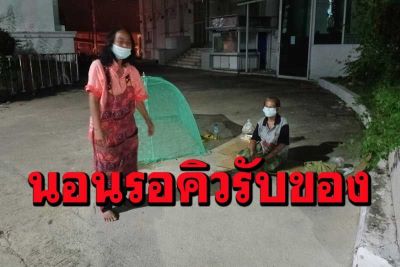 2 ยายหอบเสื่อมุ้งหมอนนอนริมถนนพัทยารอรับบัตรคิวแจกข้าวสารประทังชีพ