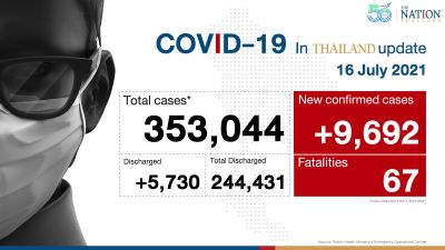 67 deaths, 9,692 new infections as Thailand fights losing battle