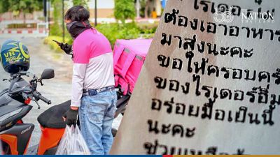 “I got an order this afternoon and was impressed by the customer’s comment. It was: ‘rider, you do not need to deliver this food for me. Take it back home and have this good dinner with your family. This order is to help local restaurants in Suphanburi.’”