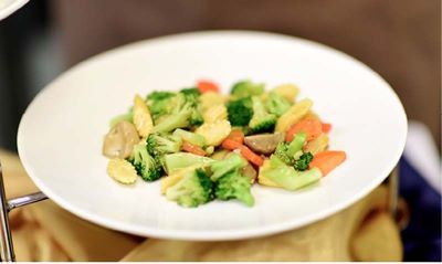 เริ่มต้นด้วย เมนูผัดผักสี่สหาย เพียงแค่มี แครอท ข้าวโพดอ่อน บรอกโคลี เห็ดฟาง (หรือจะเสริมด้วยผักชนิดอื่นที่ชื่นชอบ) และซอสปรุงรสตามใจชอบ ที่มาพร้อมคุณค่าทางโภชนาการสูง จากการรวมตัวของสารสำคัญที่ได้จากผักทั้งสี่ชนิด เช่น เบต้าแคโรทีน (Beta-Carotene) จากแครอทและข้าวโพดอ่อน ที่มีส่วนช่วยต้านการอักเสบ ป้องกันมะเร็ง เพิ่มระบบภูมิคุ้มกัน, ซัลโฟราเฟน (Sulforaphane) จากบรอกโคลี ที่มีฤทธิ์ต้านไวรัสหวัด แถมมีเส้นใยอาหารสูงที่ช่วยเสริมภูมิคุ้มกัน, โวฟลาทอกซิน (Vovatoxin) จากเห็ดฟางที่มีส่วนช่วยป้องกันการเติบโตของไวรัส ที่ทำให้เกิดไข้หวัดใหญ่ ช่วยลดปัญหาเกี่ยวกับไขมันในเส้นเลือดและโรคหัวใจ