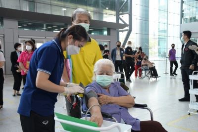 วันนี้ได้มาติดตามการฉีดวัคซีนที่นี่ ซึ่งเปิดบริการฉีดวัคซีนให้ประชาชนต่อเนื่องมาเป็นวันที่ 55 แล้ว (ตั้งแต่วันที่ 24 พ.ค. -16 ก.ค.64) ด้วยอัตรากำลังแพทย์ ทันตแพทย์ พยาบาล เภสัชกร และเจ้าหน้าที่สนับสนุน วันละ 420 คน ให้บริการฉีดวัคซีนไปแล้ว 819,011 โดส พร้อมกำชับให้เร่งรัดดำเนินการฉีดวัคซีนให้กลุ่มเสี่ยงคือ ผู้สูงอายุ ผู้มีโรคประจำตัว 7 กลุ่มโรค และหญิงตั้งครรภ์ เพื่อให้เกิดภูมิต้านทาน ลดการเจ็บป่วยรุนแรง ลดอัตราการเสียชีวิตให้ได้มากที่สุด