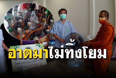 เจ้าอาวาสวัดแคบางปลากด นำทีมมอบ ‘เงินสด-พัดลม’ ให้กับ รพ.สนาม