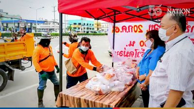 Naree Cheewasutthisilp, the owner of Madame Fin perfume brand, reportedly handed out 100 packed meals to passersby on Thamma Bucha Road in Muang district.