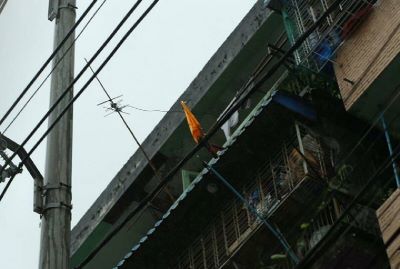 Some houses in Hlaing, South Oakkalapa and Tamwe townships are seen raise the yellow flags to ask help.