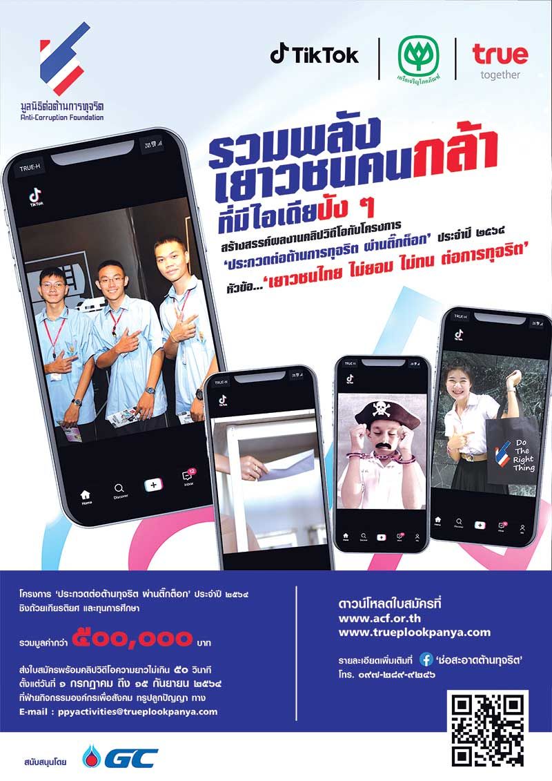 มูลนิธิต่อต้านการทุจริต ผนึกกำลัง ซีพี กลุ่มทรู และ GC ชวนเยาวชนประกวด‘ต่อต้านการทุจริต ผ่านติ๊กต็อก’