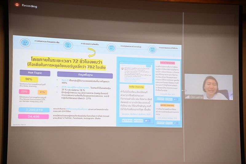 เมื่อวันที่ 20 ก.ค.64 กระทรวงการพัฒนาสังคมและความมั่นคงของมนุษย์ โดย กรมกิจการเด็กและเยาวชน ร่วมกับ บริษัทโทเทิ่ล แอ๊คเซ็ส คอมมูนิเคชั่น จำกัด (มหาชน) หรือ DTAC ร่วมเปิดเวทีรับฟังความคิดเห็นและรวบรวมข้อมูลเพื่อพัฒนา “ข้อปฏิบัติร่วมเพื่อหยุดไซเบอร์บูลลี่” เล่มแรกในประเทศไทย (ผ่านระบบ Zoom Cloud Meeting)