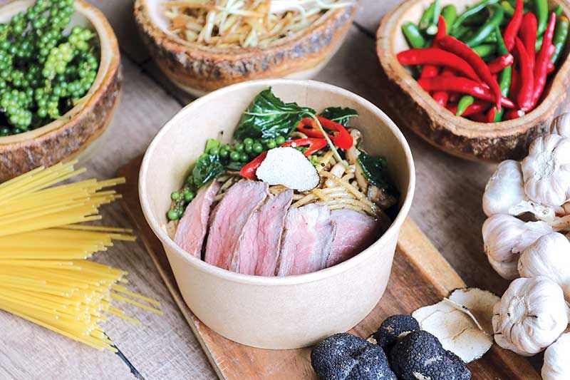 เริ่มต้นเพียง 60 บาท ให้คุณสั่งไปอิ่มอร่อยที่บ้านแบบปลอดภัย อาทิ เกี๊ยวหมาล่า60 บาท, ก๋วยเตี๋ยวเส้นสด ซอสเสฉวนหมูสับ และเกี๊ยวหมาล่า 90 บาท,บะหมี่ฮ่องกงจักรพรรดิ เสิร์ฟพร้อมหมูกรอบ หมูแดง เป็ดย่าง และเกี๊ยวหมู 120 บาท, สปาเกตตีคาร์โบนาร่า เสิร์ฟพร้อมคอหมูย่าง90 บาท, สปาเกตตีแซลมอนย่างซอสครีมไข่กุ้ง 120 บาท และสปาเกตตีผัดขี้เมาทรัฟเฟิล เสิร์ฟพร้อมเนื้อวากิว 120 บาท