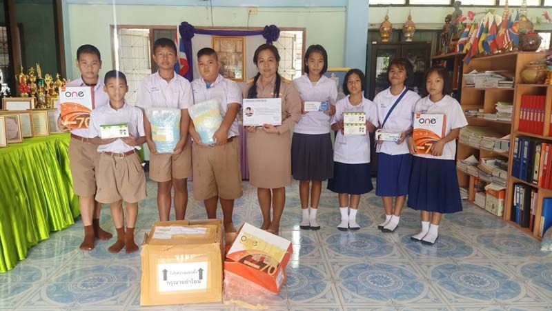 แอลกอฮอล์ สบู่เหลวอนามัย เครื่องวัดอุณหภูมิ หนังสือนิทาน การ์ตูน และอุปกรณ์การเรียนต่างๆ รวมถึงกระดาษ A4 ในการทำสื่อการเรียนนมไมโล ขนมปลาเส้นทาโร่ และขนมเล็กๆ น้อยๆ ไปยังโรงเรียนบ้านต้นโตนด จ.ปัตตานี โรงเรียนวัดหนองยาวใต้ จ.สระบุรี โรงเรียนบ้านวังคูณ โรงเรียนหนองพลวงมิตรประชา โรงเรียนหันน้อย จ.ขอนแก่น และโรงเรียนริมวัง 2จ.เชียงราย โดยได้รับการสมทบทุนจากข้าวตัง-ธนวัฒน์ รัตนกิจไพศาล และกลุ่มแฟนคลับด้วย