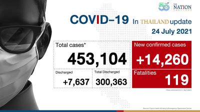 Thailand’s daily Covid-19 caseload increased by 14,260 on Saturday, taking the total to 481,967, with 119 deaths.