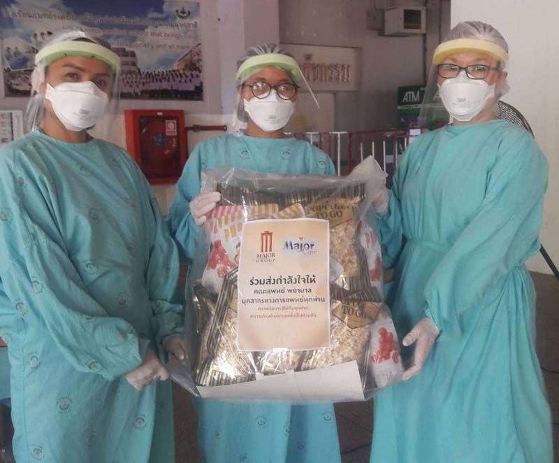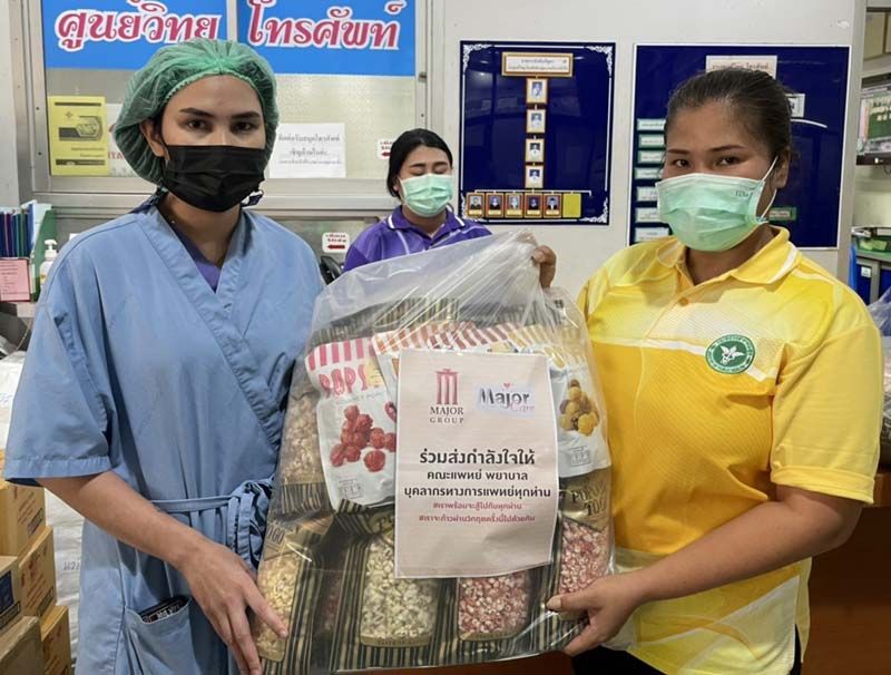 เมเจอร์ ซีนีเพล็กซ์ กรุ้ป ผนึกกำลัง มูลนิธิเมเจอร์ แคร์ ร่วมส่งกำลังใจกับ กิจกรรม “หนึ่งคำพูด…ล้านกำลังใจ” ถึงเหล่านักรบเสื้อขาวและผู้ป่วยในสถานการณ์ที่คนไทยต้องเผชิญภาวะวิกฤติ ในช่วงการระบาดของเชื้อโควิด-19 ในขณะนี้ การส่งต่อกำลังใจเป็นสิ่งสำคัญที่ เมเจอร์ ซีนีเพล็กซ์ กรุ้ป ได้ทำมาอย่างต่อเนื่องตั้งแต่การระบาดในรอบแรก เพื่อช่วยแบ่งเบาภาระของโรงพยาบาลที่กำลังเผชิญกับภาวะวิกฤติ ซึ่งแพทย์ พยาบาล และบุคลากรทางการแพทย์ เป็นผู้เสียสละและเป็นด่านหน้าในการดูแลรักษาผู้ป่วย เมเจอร์ ซีนีเพล็กซ์ กรุ้ป จึงได้จัด กิจกรรม “หนึ่งคำพูด…ล้านกำลังใจ” ด้วยการเขียนข้อความให้กำลังใจน่ารักๆ แต่ล้นไปด้วยความรู้สึกจากใจบน ถุงป๊อปคอร์น ทู โก และ ป๊อปสตาร์ สแน๊คสินค้าใหม่ล่าสุดกับเอกลักษณ์ความอร่อยของป๊อปคอร์นโรงหนังที่ไม่เหมือนใคร มอบให้แก่คณะแพทย์ พยาบาล และบุคลากรทางการแพทย์เพื่อแทนคำขอบคุณและส่งกำลังใจให้บุคลากรสาธารณสุขทุกท่านที่เสียสละมาร่วมทำหน้าที่สำคัญนี้ และพร้อมเป็นกำลังใจให้ผู้ป่วยทุกท่านมีสุขภาพแข็งแรงหายอย่างปลอดภัย ให้กับ15 โรงพยาบาลในพื้นที่เสี่ยงทั่วประเทศ คือโรงพยาบาลสระบุรี, โรงพยาบาล สิชล,โรงพยาบาลมหาราช นครศรีธรรมราช,โรงพยาบาลพังงา, โรงพยาบาลสุราษฎร์ธานี,โรงพยาบาลหนองบัวลำภู, โรงพยาบาลศูนย์บุรีรัมย์,โรงพยาบาลศูนย์ศรีสะเกษ, โรงพยาบาลศูนย์สกลนคร, โรงพยาบาลอุดรธานี, โรงพยาบาลหนองคาย, โรงพยาบาลหนองบัวลำภู, โรงพยาบาลศรีนครินทร์ ขอนแก่น, โรงพยาบาลมหาราช นครราชสีมา และ โรงพยาบาลสนามศูนย์การแพทย์ มหาวิทยาลัยแม่ฟ้าหลวง เชียงราย ด้วยความมุ่งหวังให้ประเทศไทยก้าวผ่านวิกฤตินี้ไปได้โดยเร็ว จากความร่วมมือร่วมใจช่วยเหลือกันซึ่งเป็นสิ่งที่ทุกฝ่ายต้องช่วยกัน #เราพร้อมจะสู้ไปกับทุกท่าน #เราจะก้าวข้ามวิกฤติครั้งนี้ไปด้วยกัน