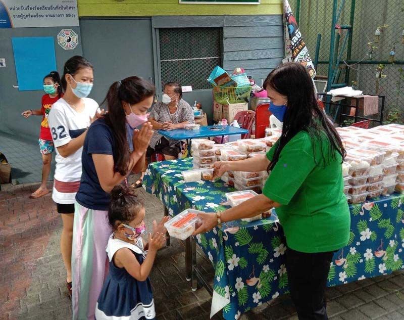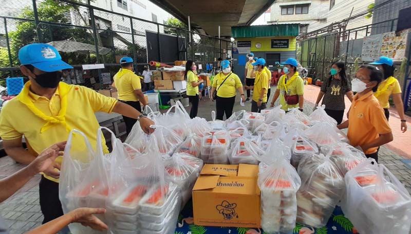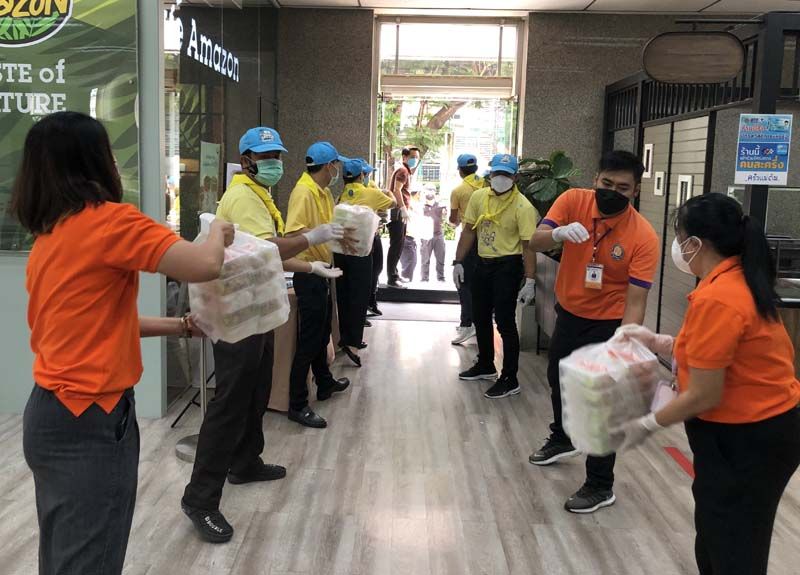 เจ้าหน้าที่เขตปทุมวันมารับมอบอาหารปรุงสุกพร้อมทานที่อาคารฯ และนำไปมอบให้กับหัวหน้าชุมชนในแต่ละชุมชนที่ได้รับผลกระทบ